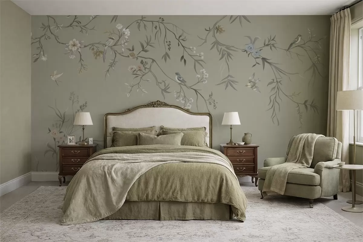 Fotomurales Diseño floral con pájaros sobre fondo fresco Nr. w05127v6