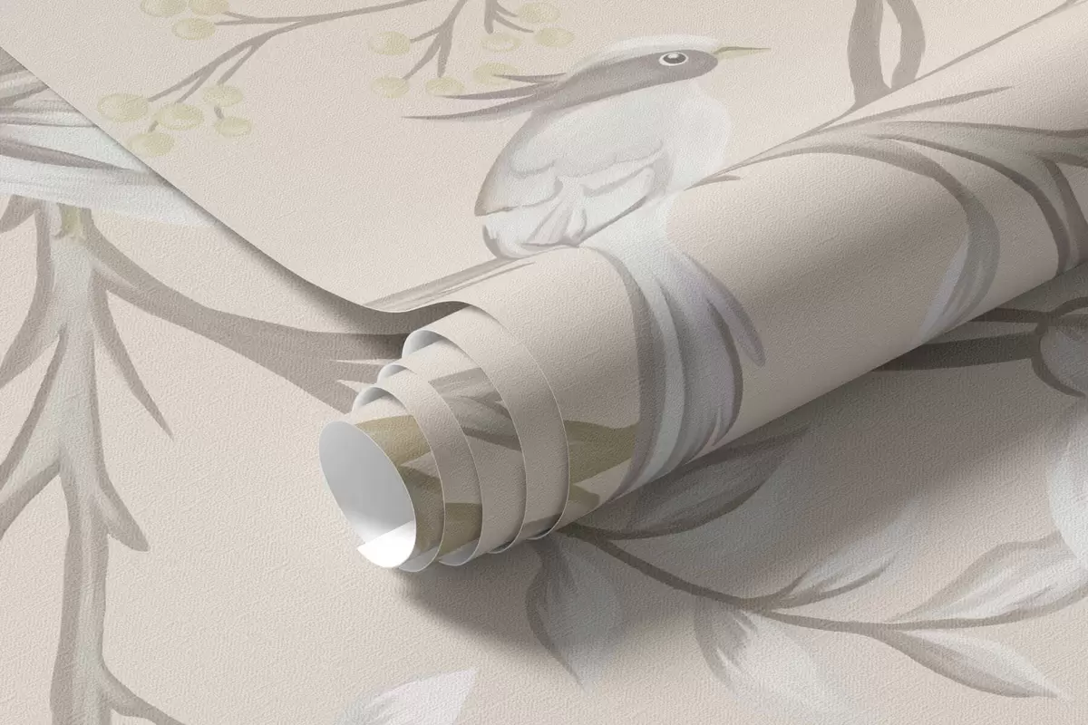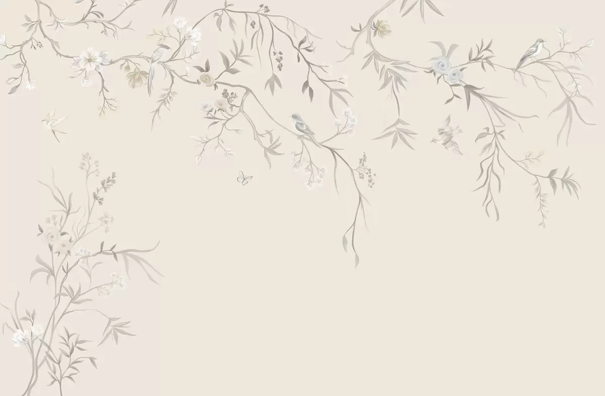 Fotomurales Ramas florales con pájaros sobre un fondo claro Nr. w05127v7