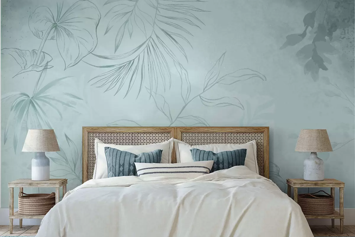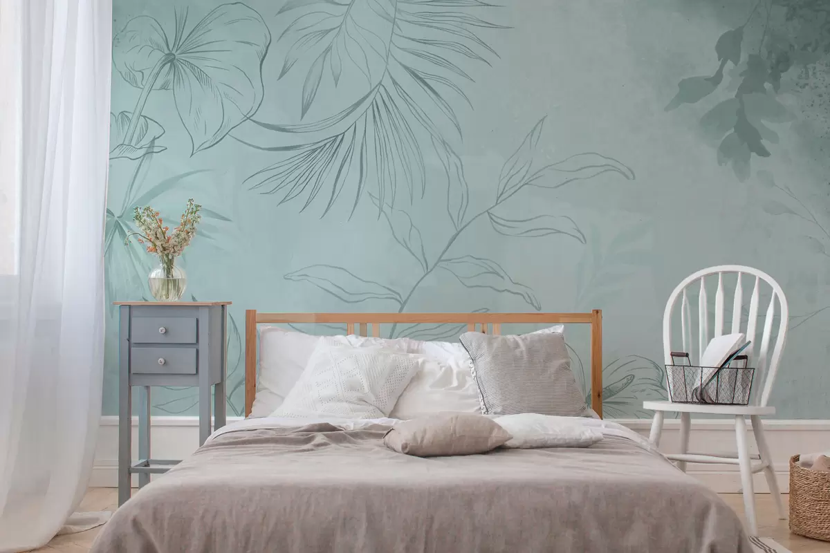 Fotomurales Plantas lineales sobre fondo verde suave Nr. w05128v1
