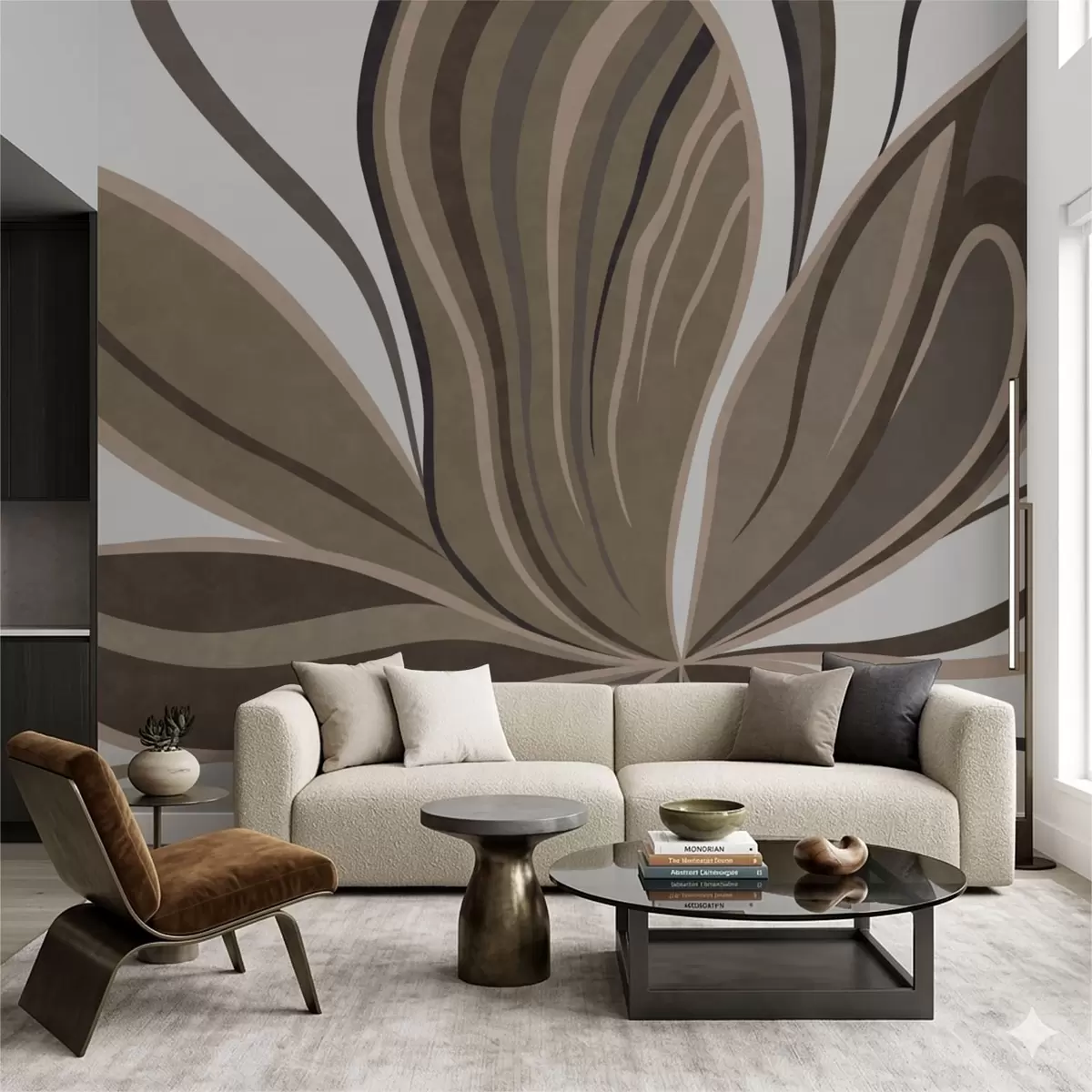 Fotomurales Flor estilizada con líneas fluidas en tonos marrones Nr. w05147