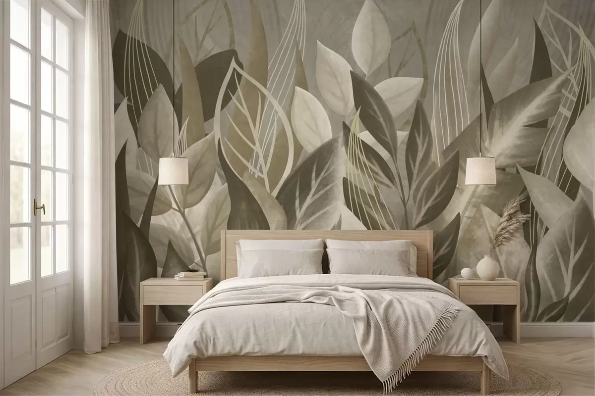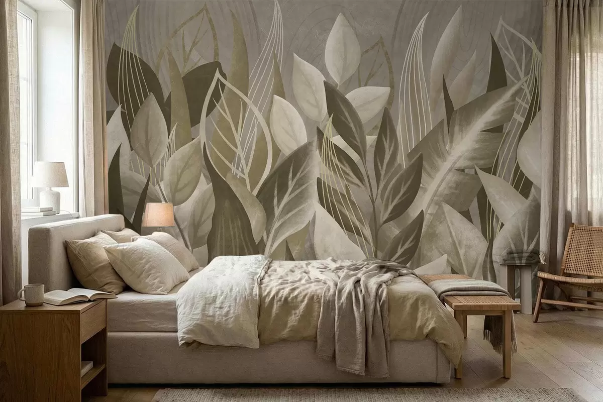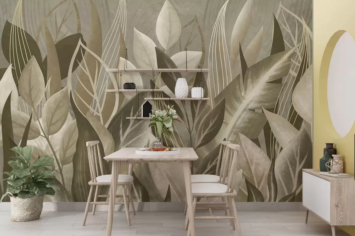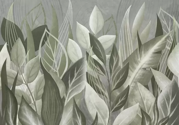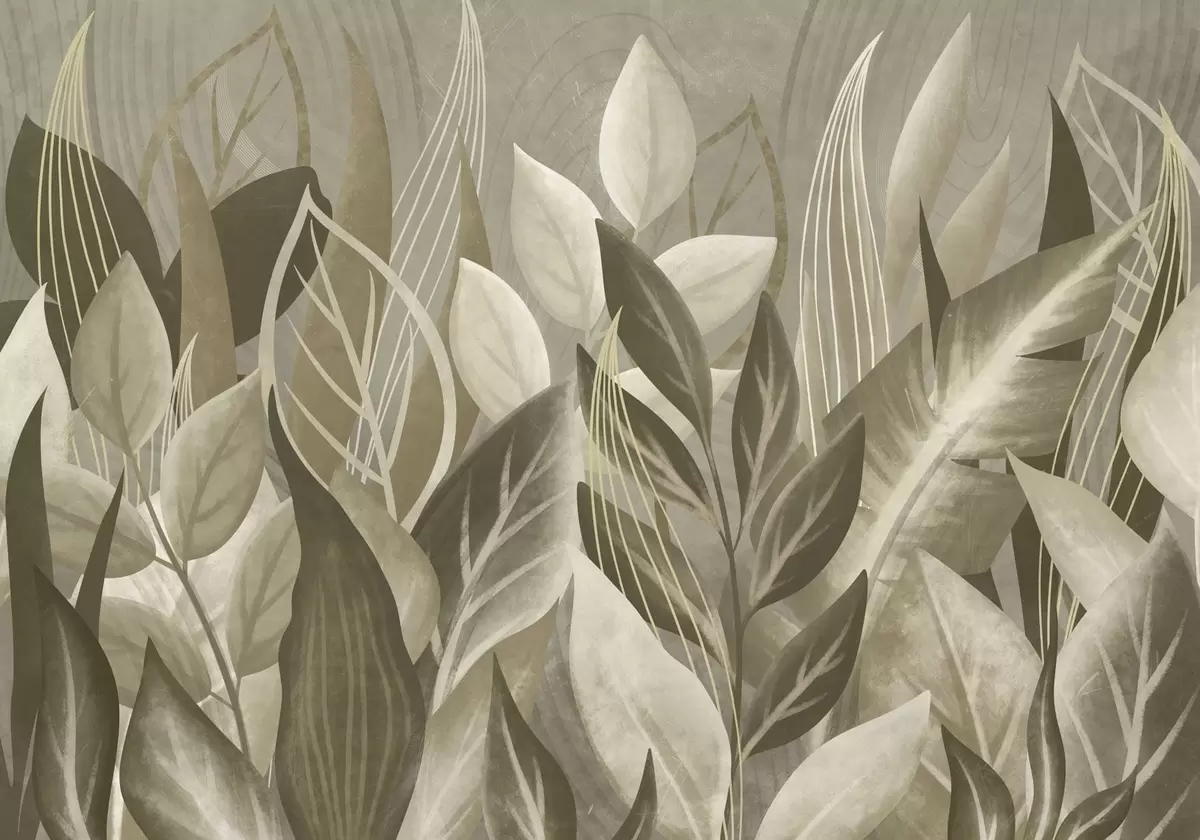 Fotomurales Hojas abstractas en tonos beige y verde Nr. w05148