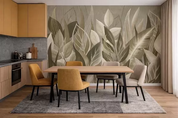 Fotomurales Hojas abstractas en tonos beige y verde Nr. w05148