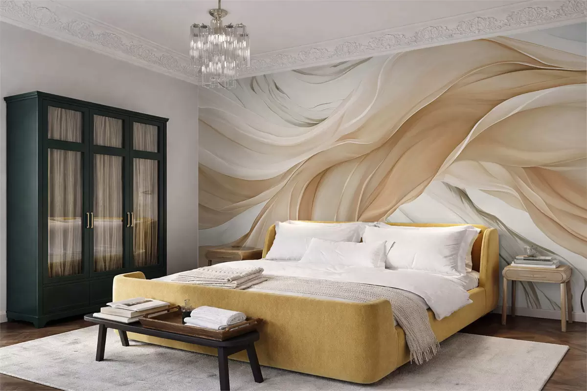 Fotomurales Ondulaciones fluidas de tela beige Nr. w05152