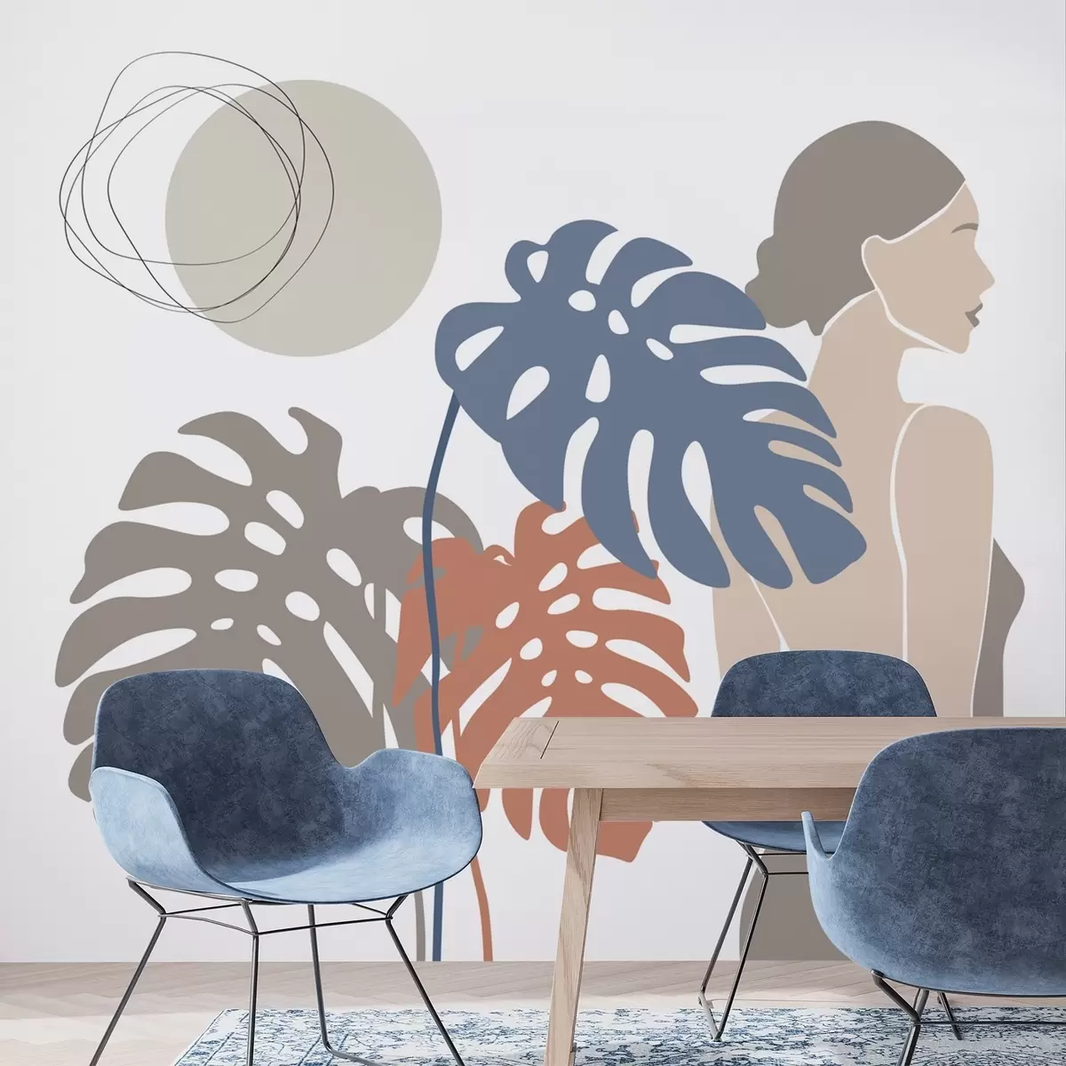 Fotomurales Silueta de una mujer cerca de hojas tropicales Nr. w05192