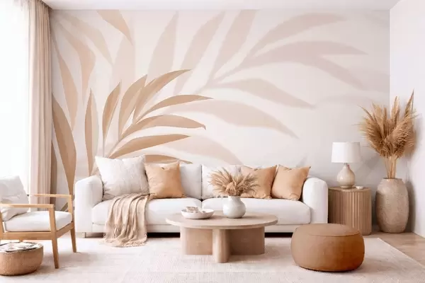Fotomurales Grandes hojas de palmera curvadas en tonos beige y marrón. Nr. w05211
