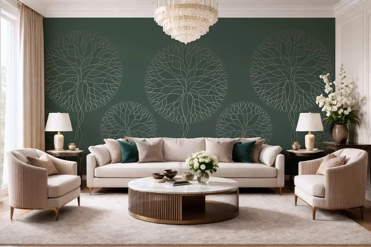 Fotomurales Árboles lineales fantásticos con copas frondosas en elegantes tonos verde oscuro. Nr. w05213v2