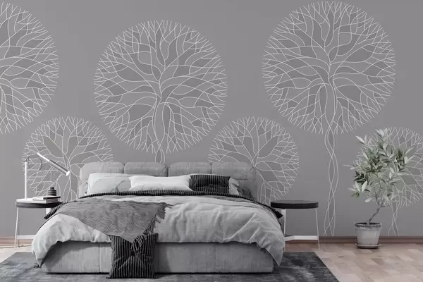 Fotomurales Árboles lineales fantásticos con copas frondosas en tonos grises medios. Nr. w05213v5