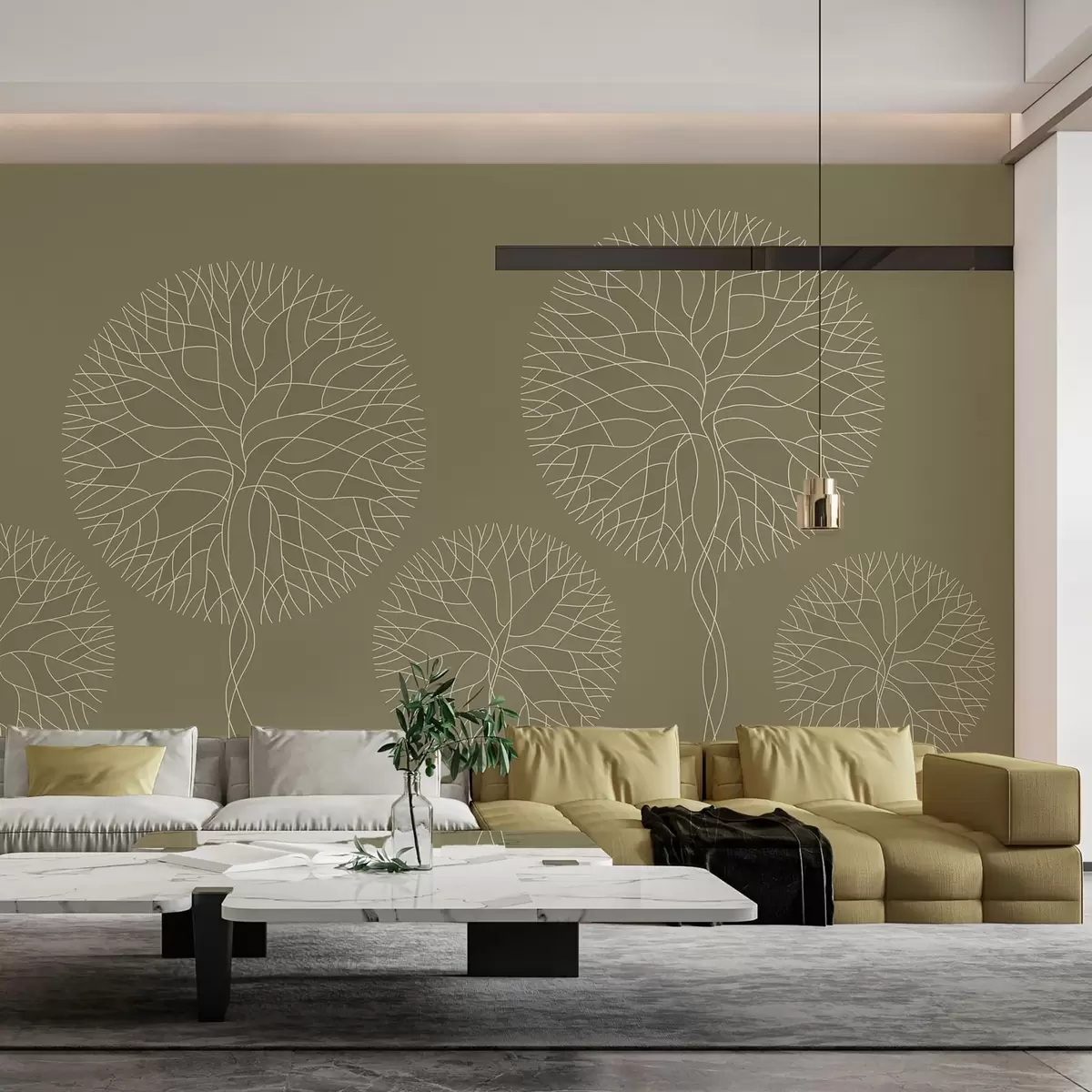Fotomurales Árboles lineales fantásticos con copas frondosas en tonos caqui. Nr. w05213v7