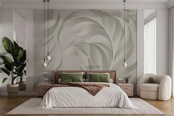 Fotomurales Plumas grandes con textura en tonos beige y oliva. Nr. w05231v1