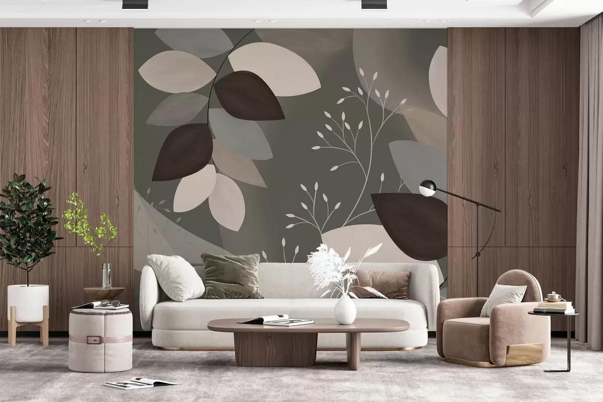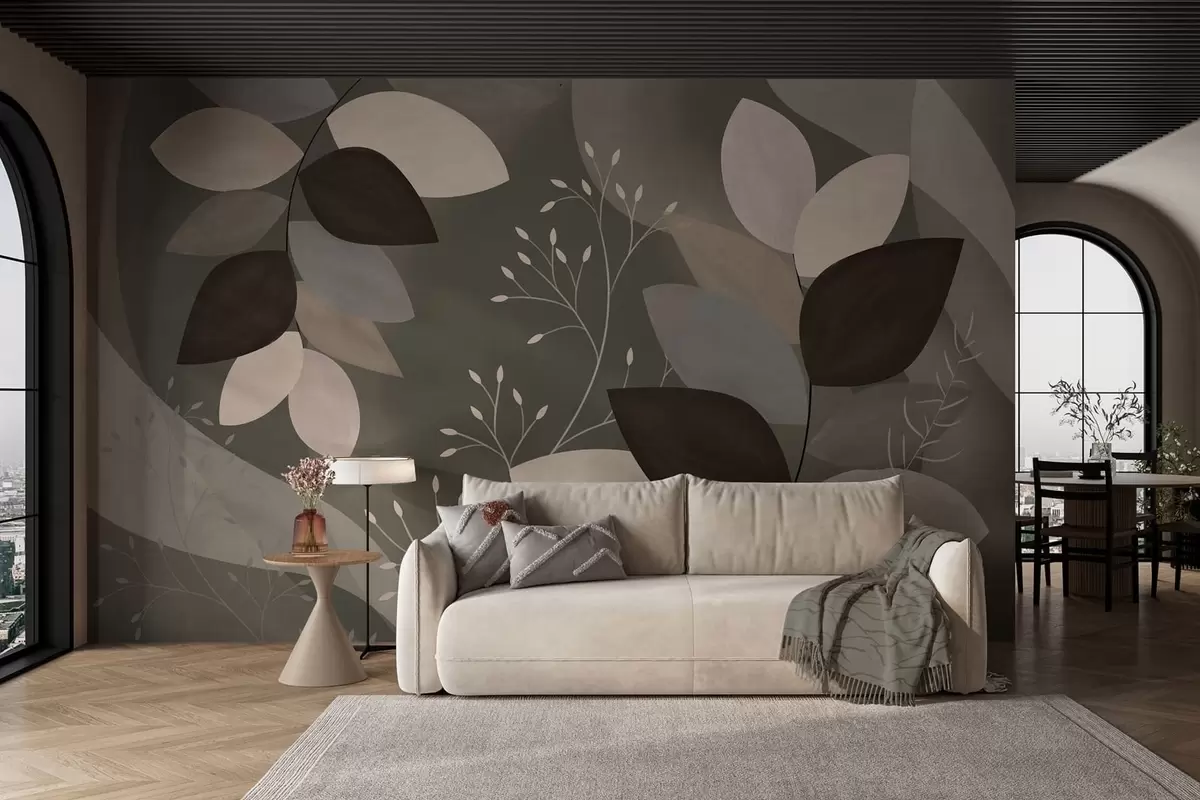 Fotomurales hojas y hierbas en tonos oscuros Nr. w05237v1