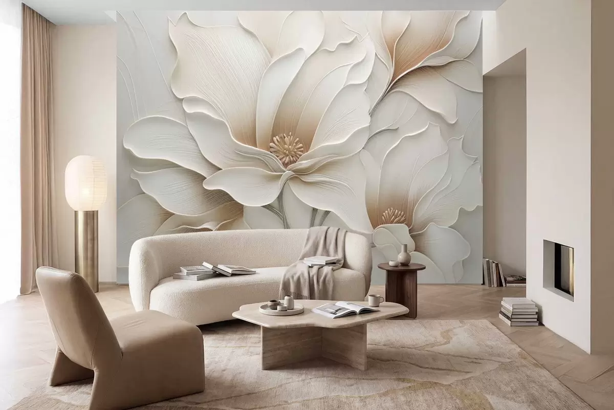Fotomurales Primer plano de relieve con flores beige en relieve Nr. w05269