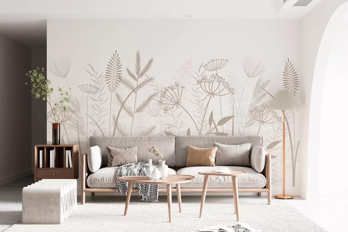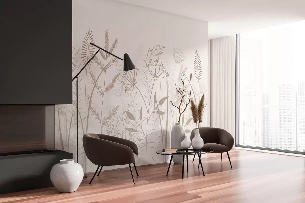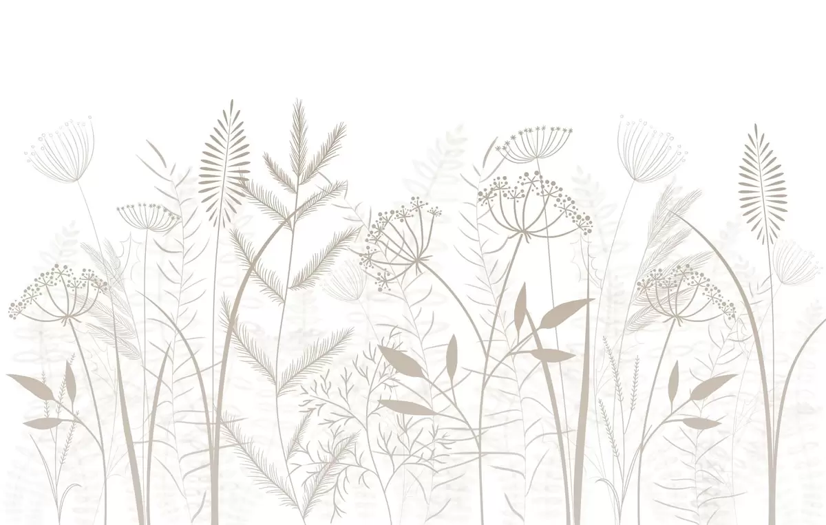 Fotomurales delicadas hierbas silvestres y flores pintadas a mano sobre un fondo blanco Nr. w05383v2
