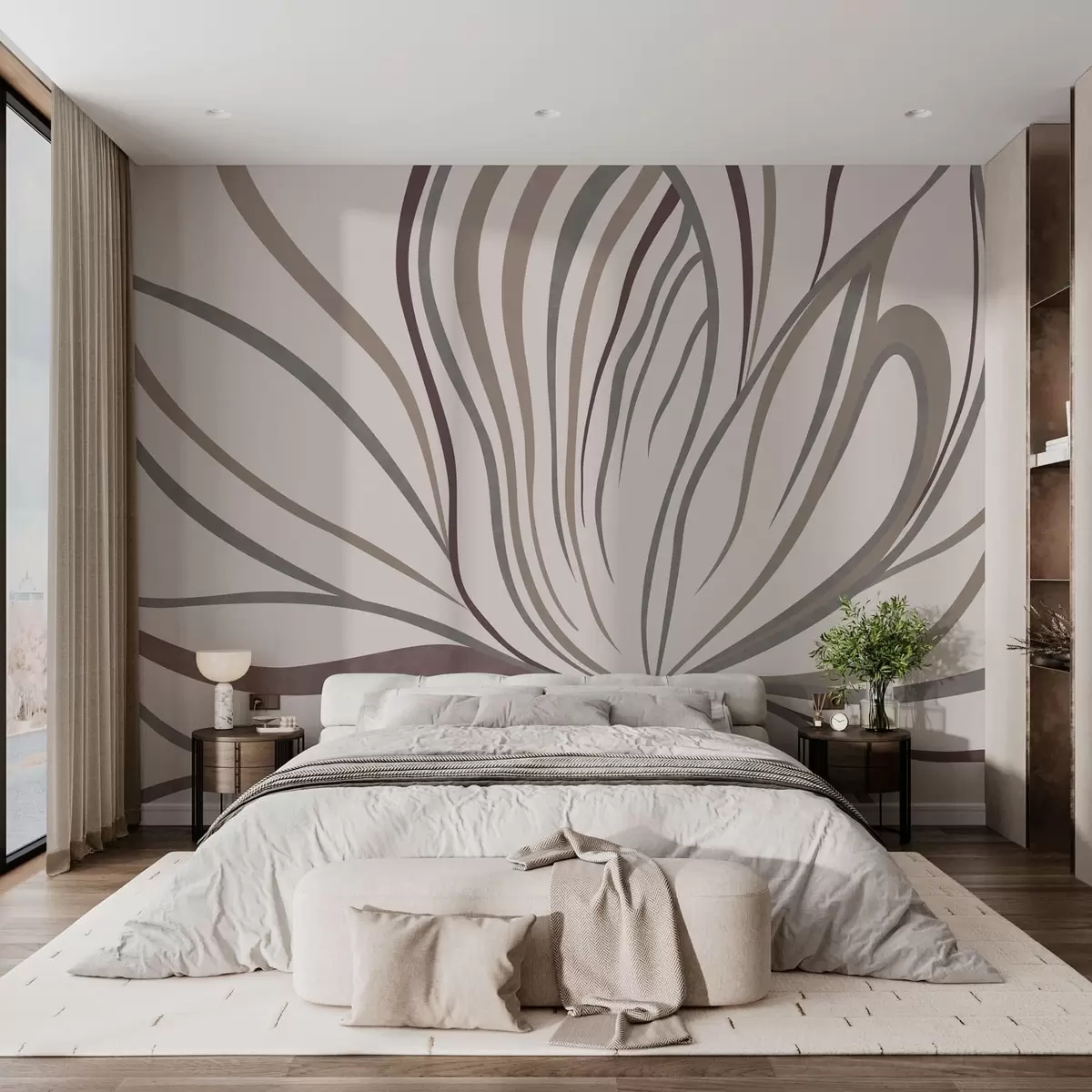 Fotomurales Flor abstracta con líneas en tonos grises y rosas Nr. w05392