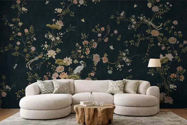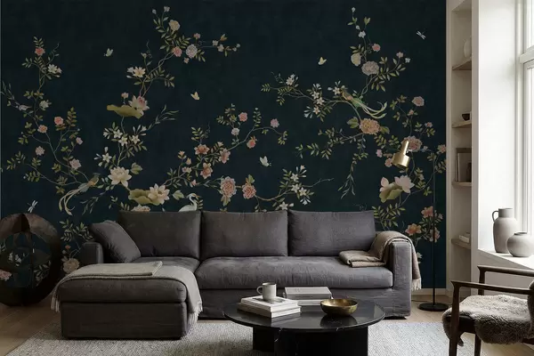 Fotomurales Ramas en flor con pájaros sobre fondo oscuro Nr. w05416v3