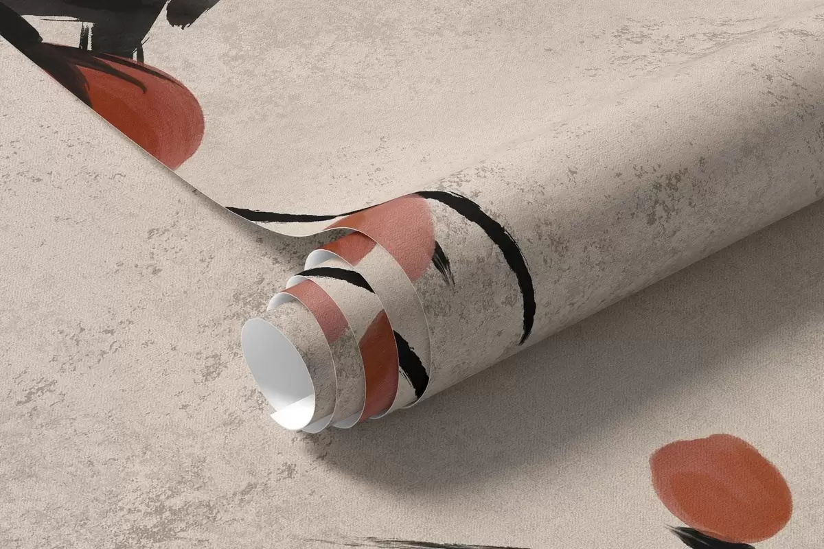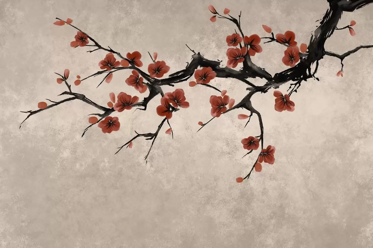 Fotomurales Rama con flores de estilo oriental sobre fondo beige Nr. w05425v4