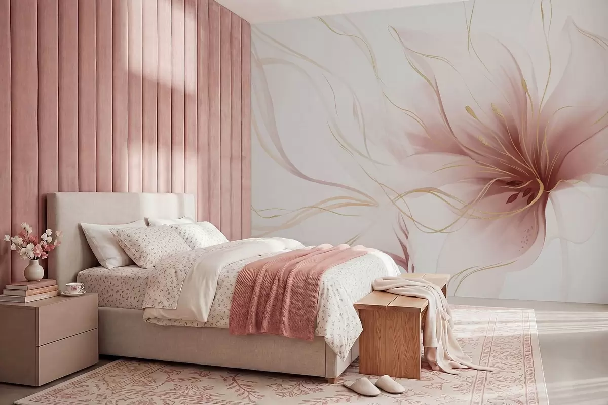 Fotomurales Una flor rosa abstracta con líneas fluidas al estilo del arte fluido Nr. w05428v1