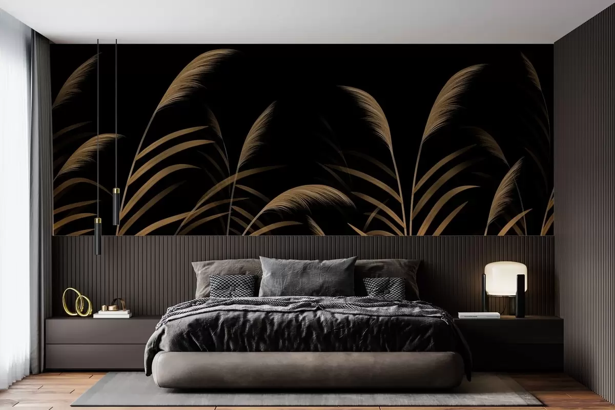 Fotomurales Hierbas minimalistas sobre fondo oscuro con gran contraste Nr. w05432v3
