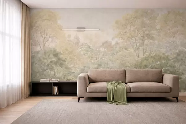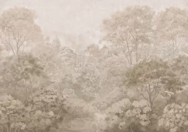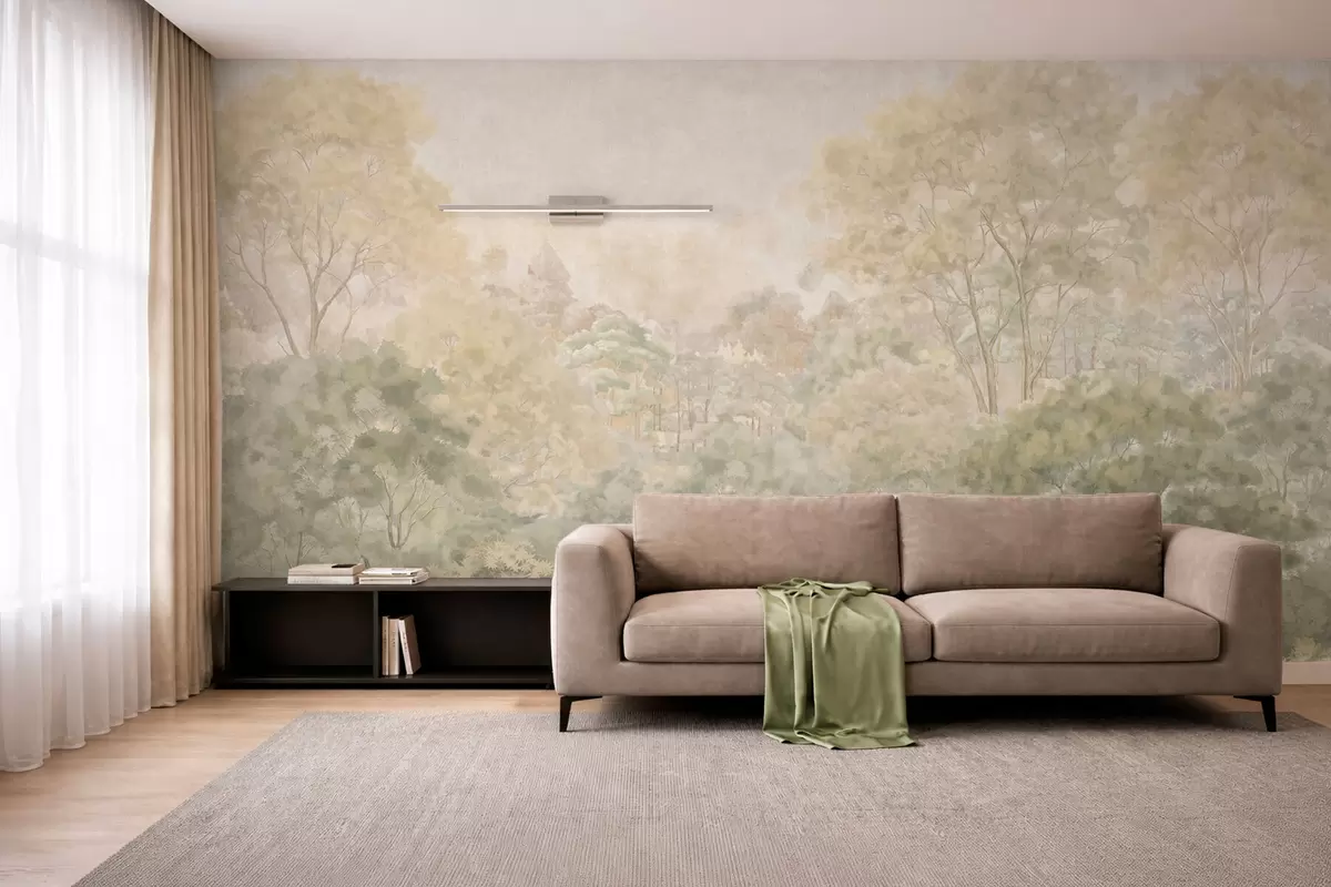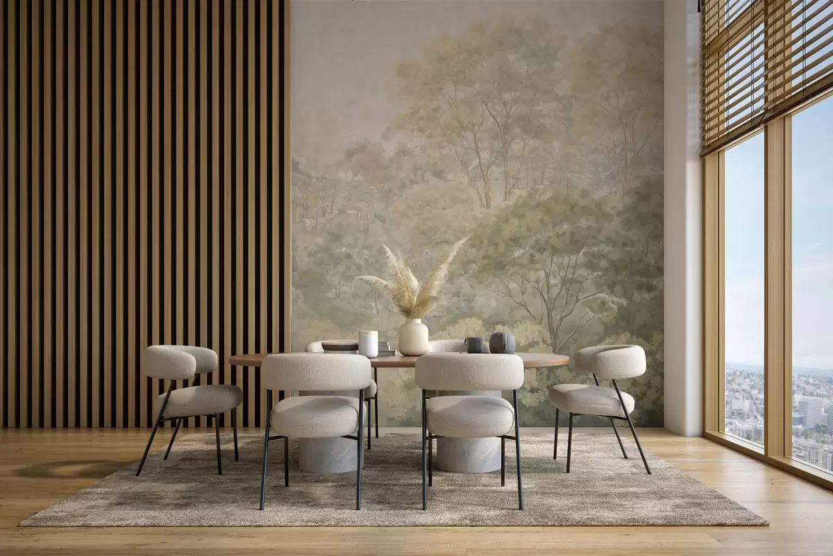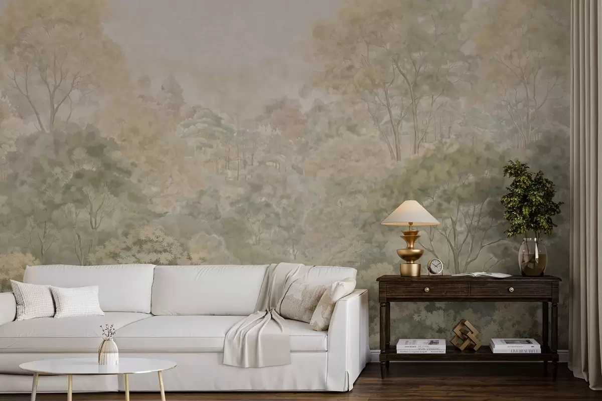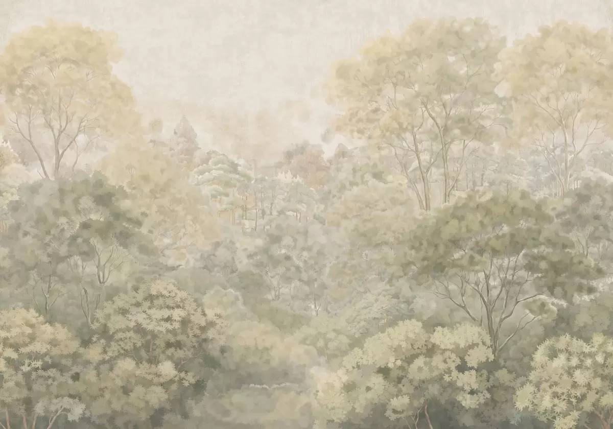 Fotomurales Paisaje forestal de estilo vintage en tonos verdes apagados Nr. w05433