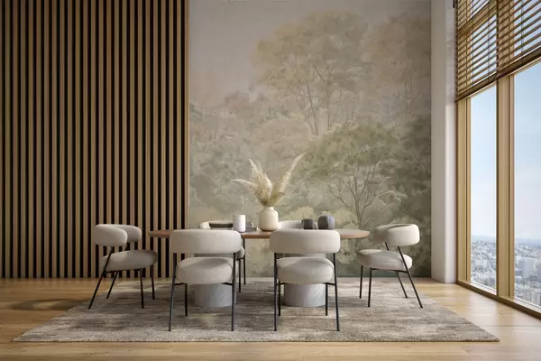 Fotomurales Paisaje forestal de estilo vintage en tonos verdes apagados Nr. w05433