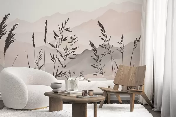 Fotomurales Siluetas de hierba con las montañas de fondo Nr. w05501