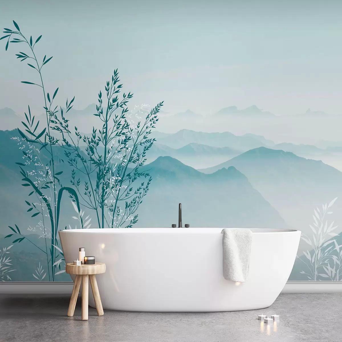 Fotomurales Vista a la montaña con plantas y flores. Nr. w07910