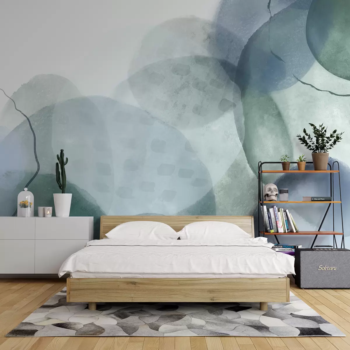 Fotomurales Formas abstractas suaves de acuarela en tonos de azul, verde y blanco. Nr. w07926