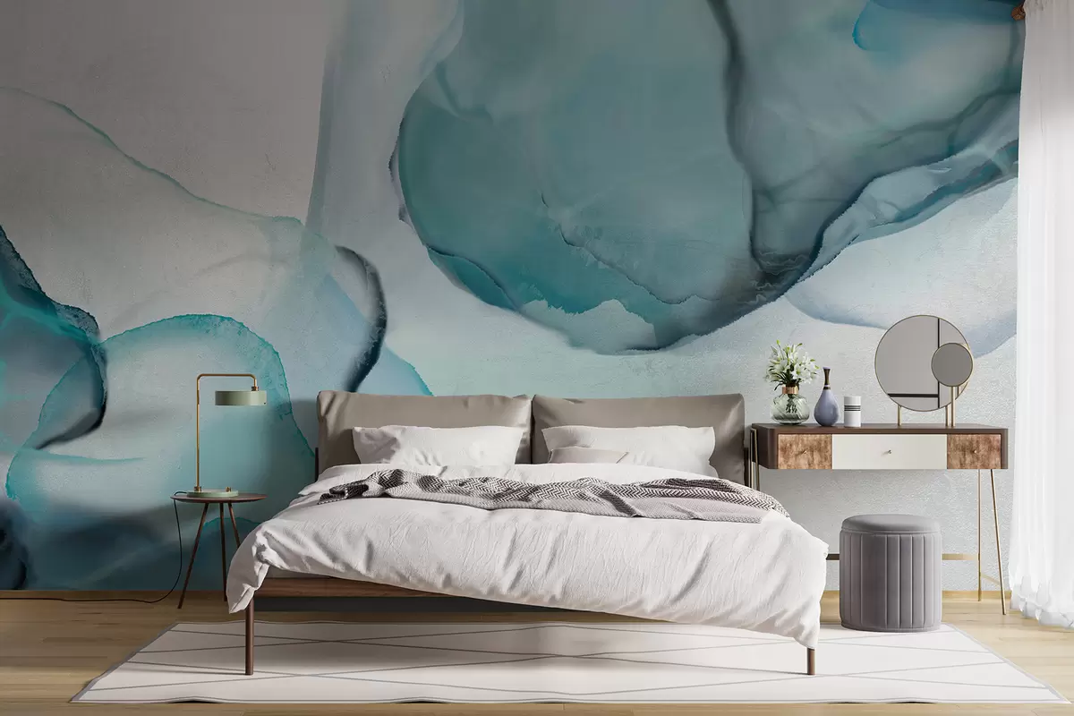 Fotomurales Arte fluido abstracto en azul y blanco, que se asemeja a agua y tinta que fluyen. Nr. w07927
