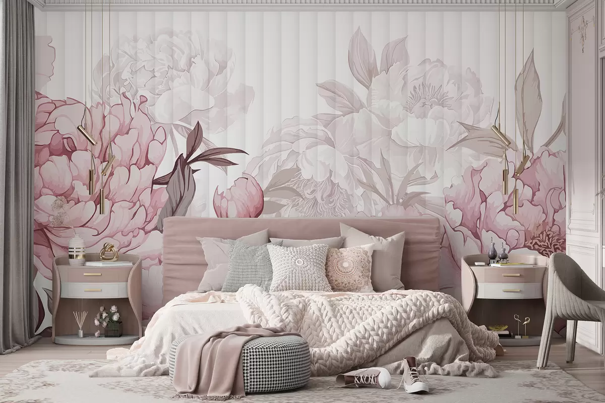 Fotomurales Primer plano de grandes y delicadas flores de peonía rosas y blancas sobre un fondo suave y texturado Nr. w08255