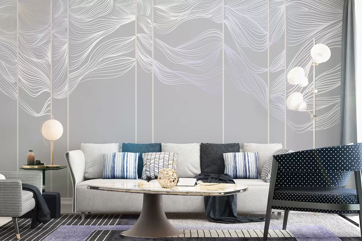murales de pared Ondas abstractas de líneas blancas sobre fondo gris claro w08263v1