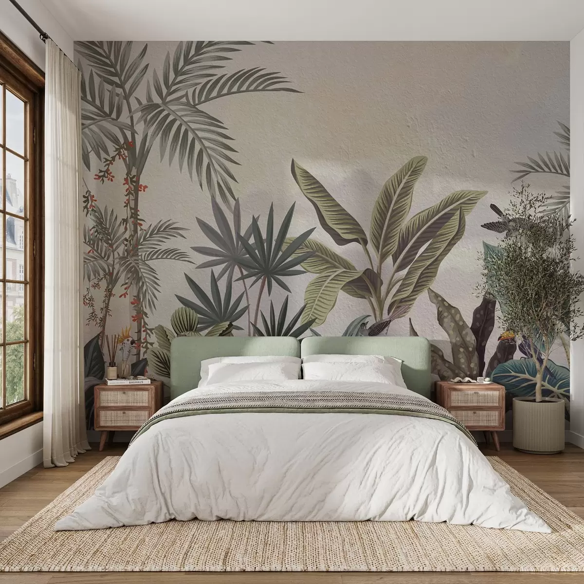 Fotomurales Selva tropical con palmeras y pájaros de colores Nr. w08496