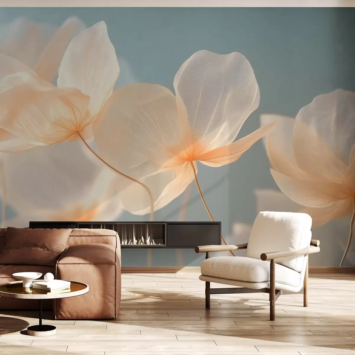 Fotomurales Pétalos de loto, una delicada composición con fondo azul Nr. w08500