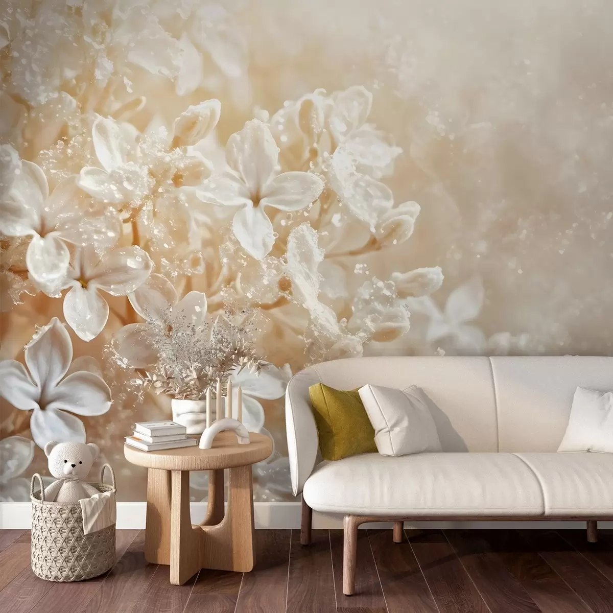 Fotomurales Delicadas flores blancas de color lila con un suave fondo amarillo difuminado Nr. w08533