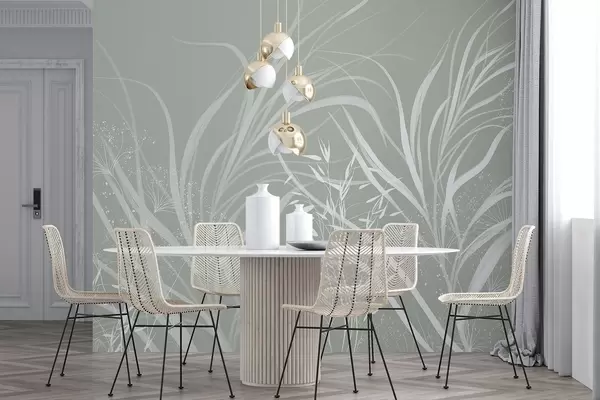 Fotomurales Delicado y moderno estampado floral minimalista en blanco sobre fondo verde pastel claro Nr. w08583v1