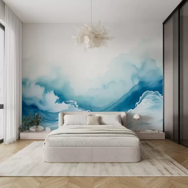Fotomurales Olas del mar en estilo acuarela en tonos azules Nr. w08655