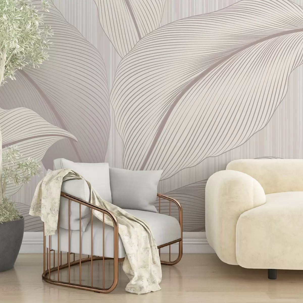 Fotomurales Sutil estampado de grandes hojas en suaves colores pastel sobre fondo claro con ligeros detalles de textura Nr. w08684