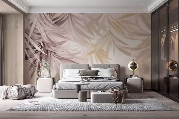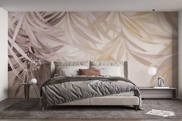 Fotomurales Suaves hojas tropicales de colores claros en tonos marrones y naranjas, que se funden en un estampado pálido y neutro Nr. w08703v1