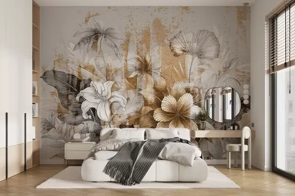 Fotomurales Diseño vintage con flores y plantas exóticas Nr. w08767