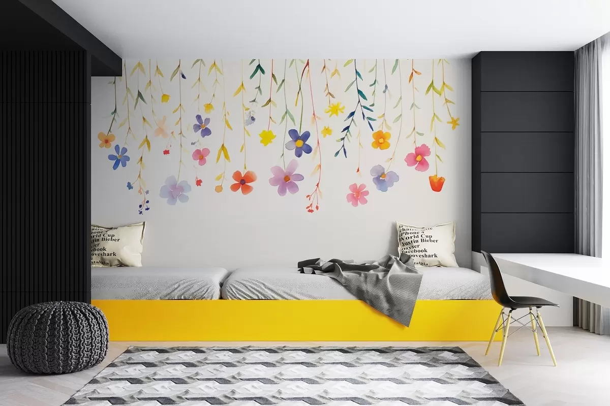 Fotomurales Flores silvestres en estilo acuarela, sencillas y coloridas Nr. w08851