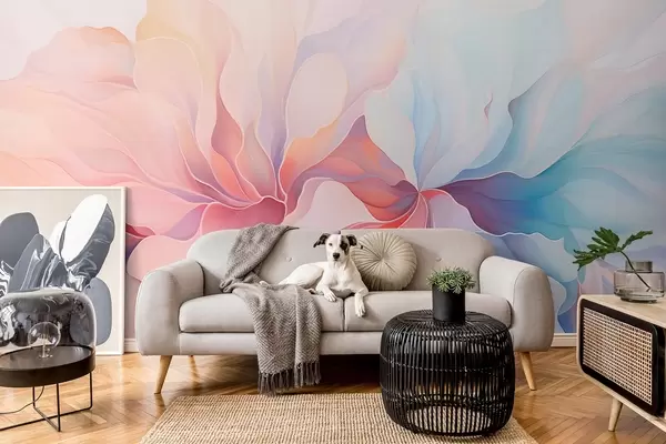 murales de pared Diseño floral abstracto en suaves tonos rosas y azules w08873
