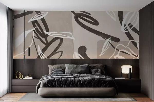 Fotomurales Diseño moderno y minimalista de textura abstracta con elementos florales en una paleta de color beige neutro Nr. w08888