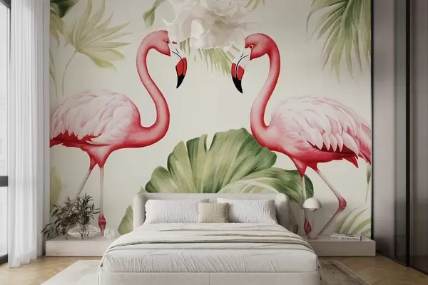 Fotomurales Pareja de flamencos en matorrales tropicales Nr. w08907