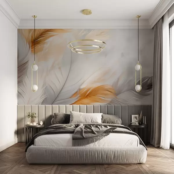 Fotomurales Plumas grises y amarillas sobre fondo gris Nr. w08937