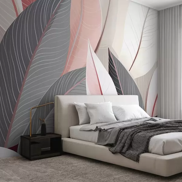 Fotomurales Primer plano de hojas en tonos grises y rosas Nr. w08944v1