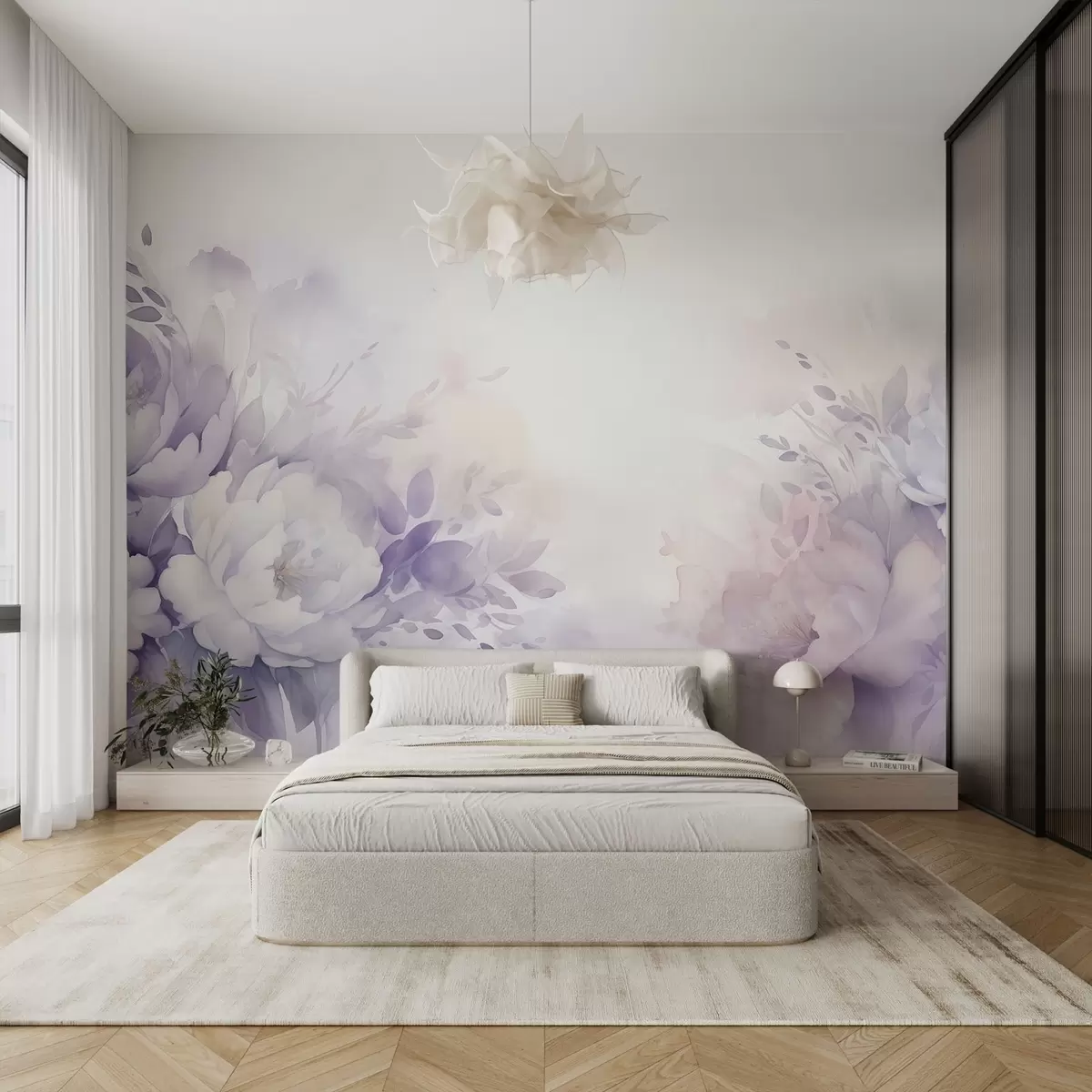 murales de pared Grandes y delicadas flores lilas, imitación de acuarela w08946