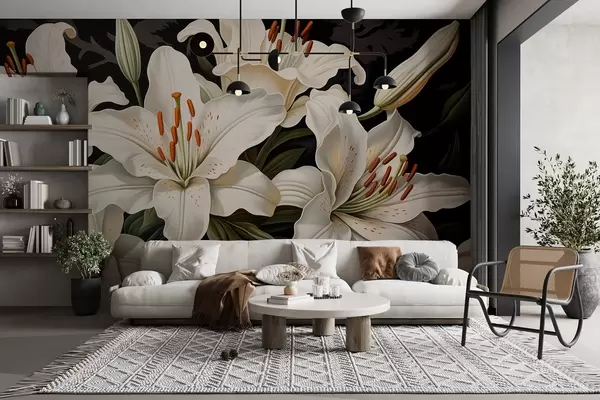 Fotomurales Elegantes flores blancas grandes sobre fondo oscuro Nr. w08983