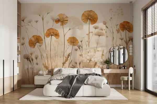 murales de pared Flores silvestres con matices amarillos en tonos cálidos w08994