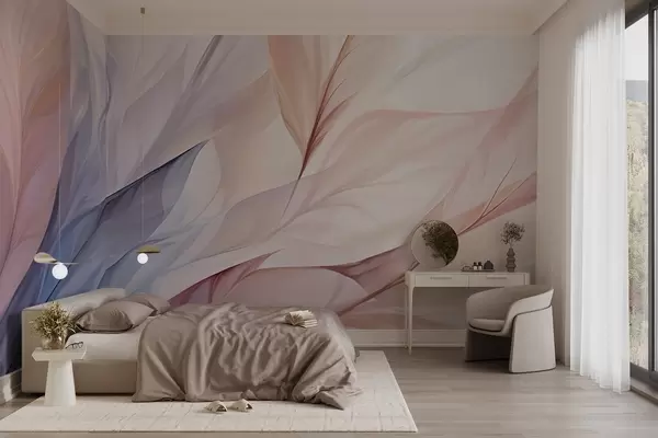 Fotomurales Diseño floral abstracto con pétalos que fluyen en tonos pastel de rosa, melocotón y azul, creando una composición suave y de ensueño Nr. w09049