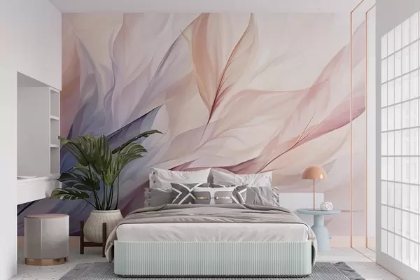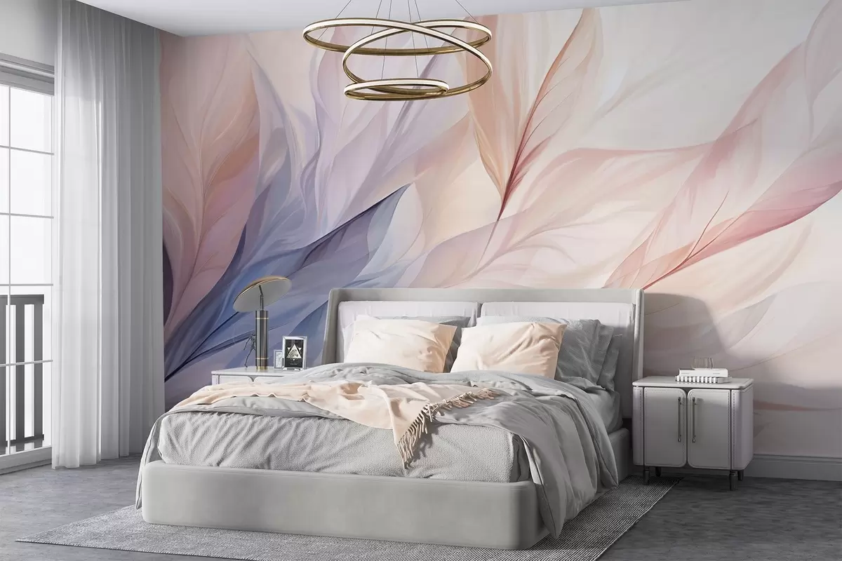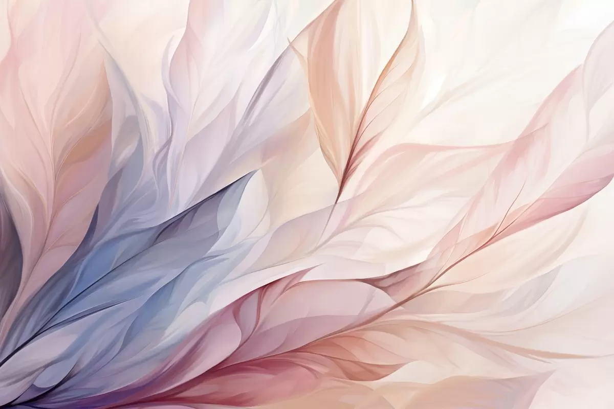 Fotomurales Diseño floral abstracto con pétalos que fluyen en tonos pastel de rosa, melocotón y azul, creando una composición suave y de ensueño Nr. w09049