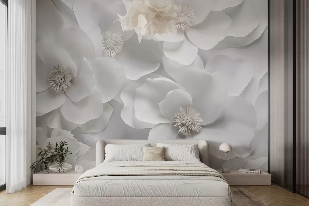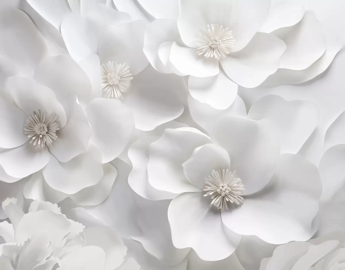Fotomurales Flores blancas con delicados pétalos, dispuestas en un denso racimo, creando una sensación de pureza y elegancia sobre fondo blanco Nr. w09053