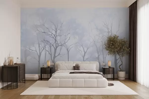 Fotomurales Árboles vintage monocromos en la niebla Nr. w09065v2